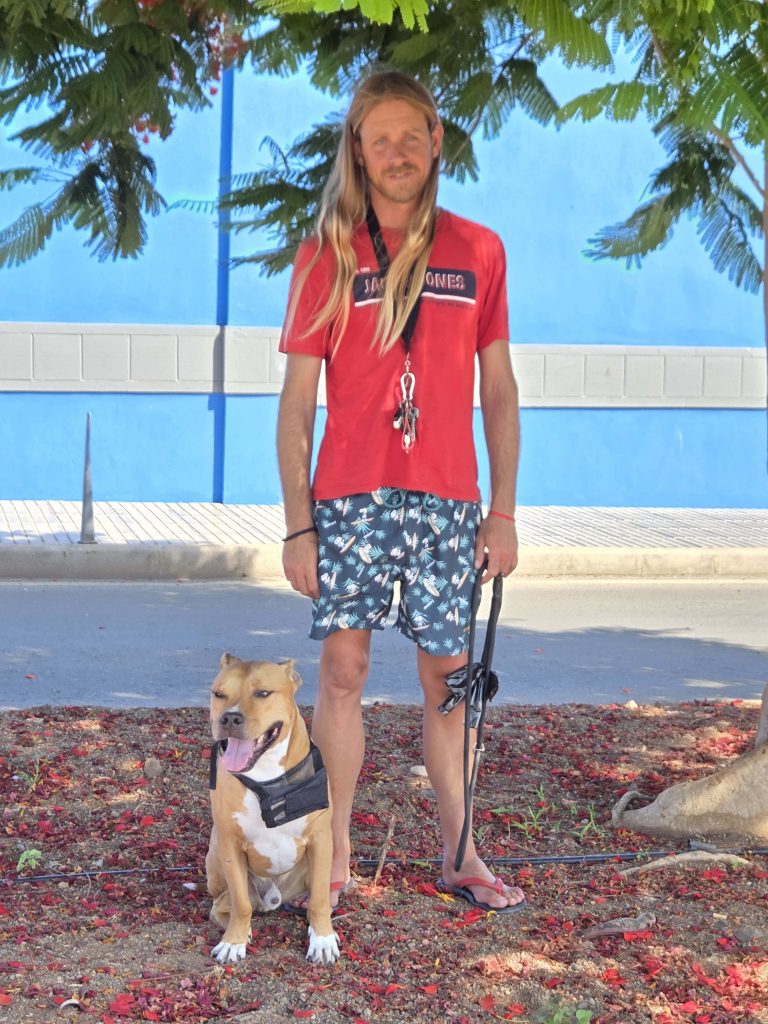 Turrón is a very noble, obedient, and affectionate dog. He spent several years in the shelter waiting for someone to adopt him. Time passed and no one asked about him, until one day a miracle happened — and now our big boy lives here on the island, with his dad who adores him and takes great care of him. A thousand thanks to his dad for choosing adoption and for thinking of Turrón.